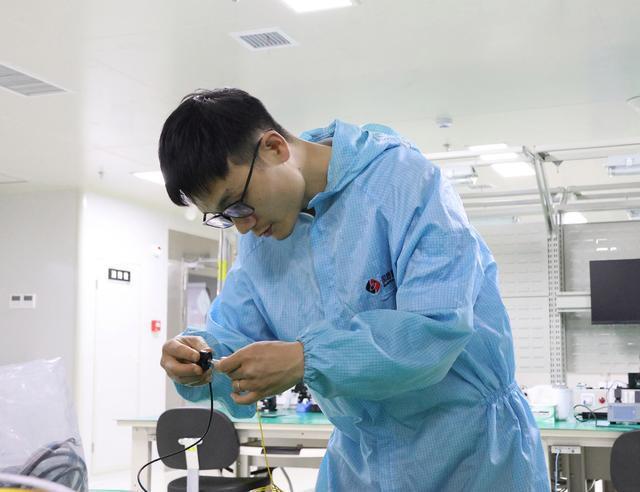 2024 年 4 月 26 日,国盾量子资深技术专家李东东博士正在检查噪声测试链路(杨雅淑 / 摄)