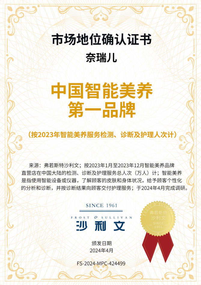 5月18日,奈瑞儿在17周年盛典上宣布,获得“中国智能美养第一品牌”的市场认证。这一认证的背后,是奈瑞儿在中医理论指导下AI+亚健康调理的创新突破,也是标志着奈瑞儿在智能美养服务的领军地位。