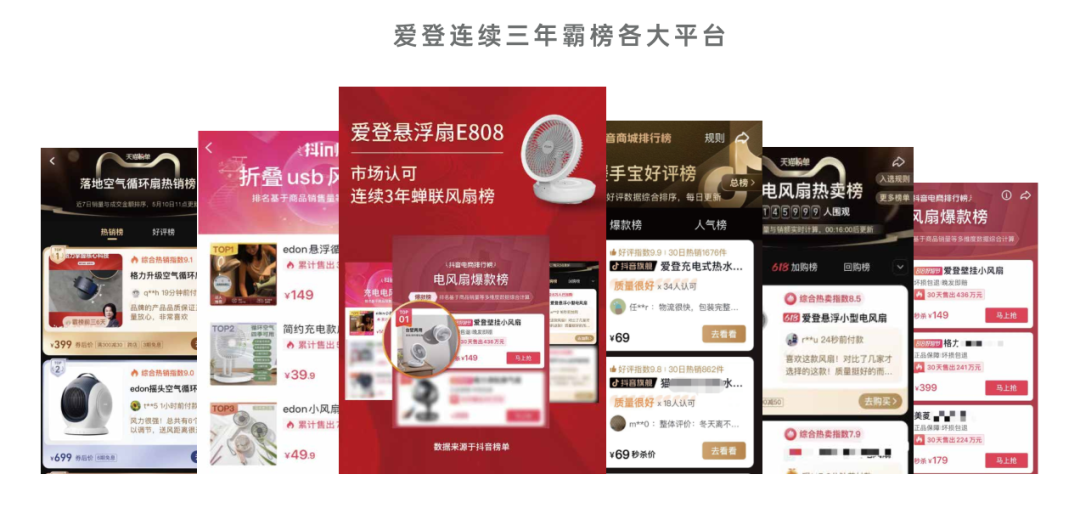 作为小家电品牌新起之秀, 爱登风扇产品连续三年霸榜 ,品质得到了广大消费者的认可。