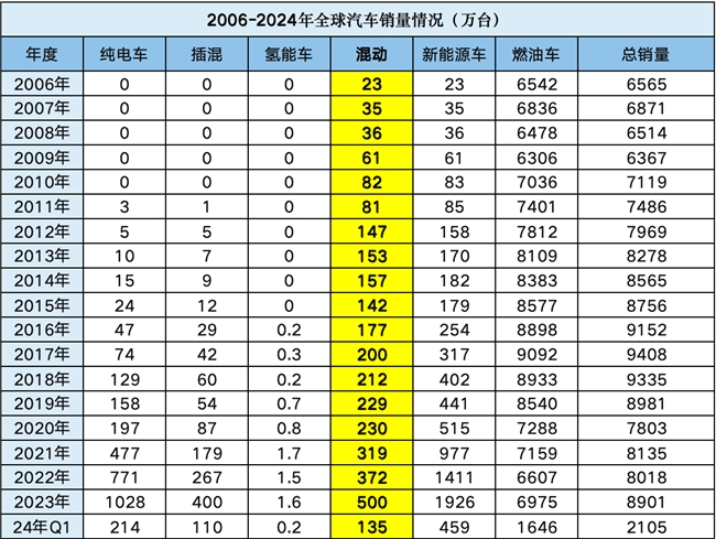 高盛在今年3月的一份报告中指出,全球范围内,2024年纯电动汽车销量同比下降可能性越来越大,而考虑到续航里程、基础设施建设和总体拥有成本等因素,HEV销量将加速。