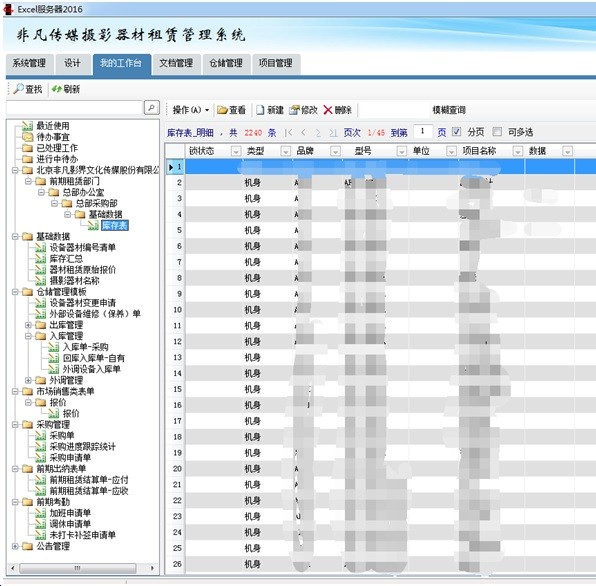据介绍,北京非凡影界文化传媒股份有限公司是一家全流程影视技术服务公司,公司立足专业化团队建设,拥有尖端的电影、电视剧制作水平、业界资深的剪辑师、调色师、录音师、特效师等后期团队。拥有300平米调色棚、杜比全景声混音棚、ADR对白录音棚、动效拟音棚以及独立影视后期机房等硬件设施。服务项目涵盖前期设备租赁、DIT数据管理、全片剪辑、数字中间片调色、全音频制作、视效解决方案及视效制作、预告片制作等主要作品 后期制作电影作品《美人鱼》《年少轻狂》《同桌的你》 二、目前运营管理情况 北京非凡影界文化传媒股份有限公司为影视剧组提供专业的摄影器材设备供应,业务从供应商采购、入库、外借、维修、出库到财务结算流程,目前只是通过office电子表格来记录日常设备信息情况,各部门的不能很好的协同办公,存在重复登记工作重叠的情况,工作效率不高,缺少一套适合本公司的信息化管理系统。 三、信息系统的选型确定 1.基于以上情况需要有一个适合我们自己管理需要的信息化管理系统,既能把电子表格的内容很好的体现到系统里面,又可以协同网络化管理 2.通过勤哲EXCEL服务器平台软件,借住office电子表格办公软件特点,此软件平台可根据自己企业需求来设计和搭建全方位的信息化管理系统。公司业务主管尹琦通过学习软件功能后为公司在勤哲EXCEL服务器系统搭建了一套适合本公司的业务信息系统。 四 、勤哲EXCEL服务器各功能模块的建立4.1 业务分类