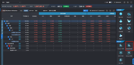 随着金融市场开放的广度与深度不断拓宽,金融产品呈现出多样化的发展态势,其中债券投资组合凭借其低风险性、高流动性与稳健的收益表现,逐渐成为投资理财领域备受瞩目的焦点。投资经理不仅需要了解哪些债券值得投资,更要对债券投资组合配置后的表现进行精细评估和准确归因,从而创造持续、稳定的收益。此次 DolphinDB 携手九鞅科技,为债券绩效归因分析系统加速提效,更好地赋能银行及资管行业的投资管理精细化和数智化升级,共同助力业务增长。由九鞅科技研发的 Portfolio 360 投资组合管理系统,为金融投资机构提供了全面的投组绩效归因功能覆盖。该系统专业化的组合绩效分析功能,允许用户对单一或多个投组的任意时间段净值和关键绩效指标进行快速计算和高颗粒度分析,完整支持绝对和相对两种业绩分析模式。同时,系统更为固收类组合提供了一系列颗粒度精细到组合个券特征的归因分析,支持用户按行业板块、信用评级、期限、业务划分等纵向标签灵活划分,亦允许用户横向自定义归因区间段。投组系统还提供了基于标准债券 Campisi 模型等多个归因分析模块以及展示视图,以满足不同类型组合及用户角色下的多样化归因需求。