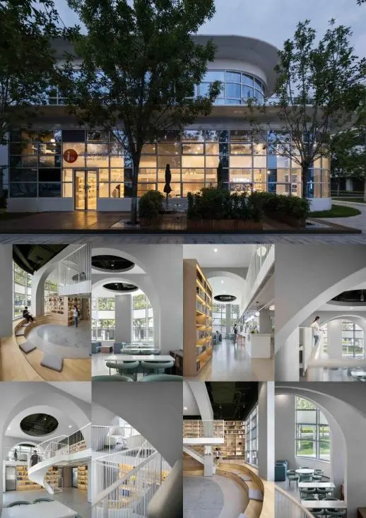 该空间汇聚了展示、文化、社交、商务、阅读等多元主题功能模块,能够满足休闲办公、 阅读、开会、路演、接待、洽谈、休憩等多种需求,为园区企业及访客提供一站式的服务体 验。