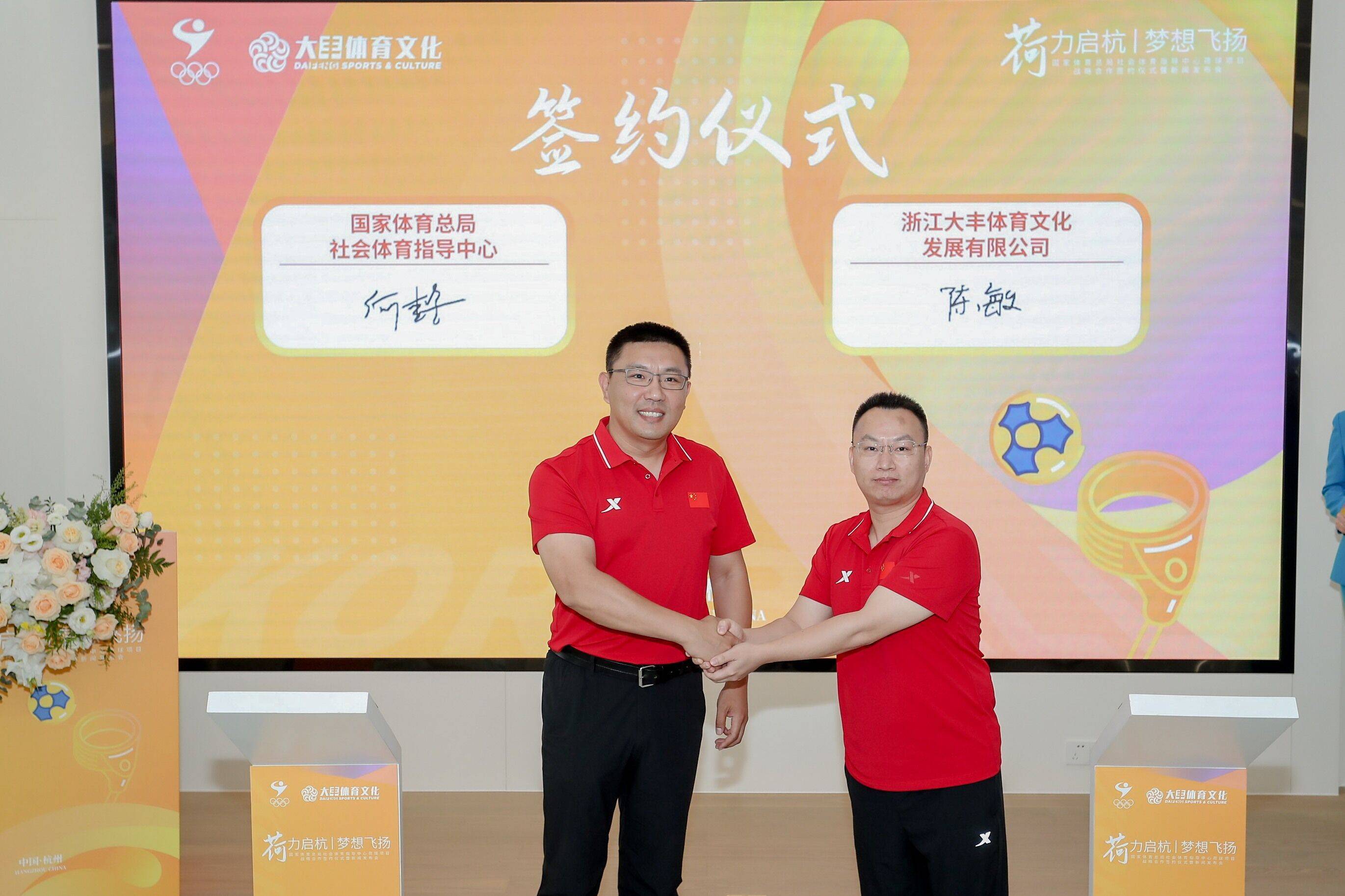 发布会现场还举行了荷球项目战略合作签约仪式,国家体育总局社会体育指导中心全民健身事业部副主任何懿、浙江大丰体育文化发展有限公司荷球事业部总监陈敏签署了合作协议,携手推进荷球项目开启新的时代。未来,大丰体育将作为国家体育总局社体中心荷球项目的战略合作伙伴单位,为中国荷球发展注入强劲动力。会后,与会嘉宾共同参观了大丰科创中心。