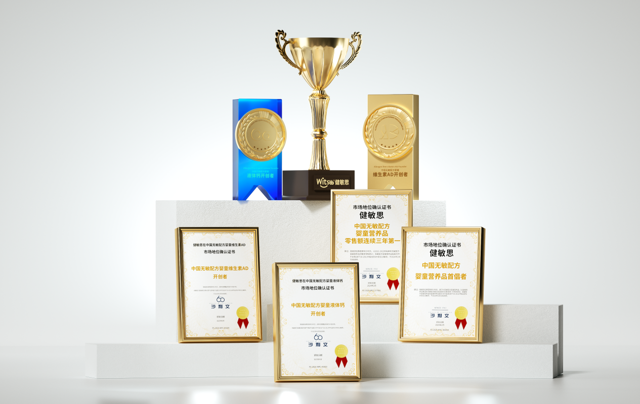 值得一提的是,Witsbb健敏思还是全球权威咨询机构弗若斯特沙利文认证的“中国无敏配方婴童营养品首倡者”“中国无敏配方婴童液态钙开创者”“中国无敏配方婴童维生素AD开创者”,并连续三年获得“无敏婴童营养品全国销售额第一”的美誉。这一认证和荣誉不仅为家长们提供了更可靠的保障,也进一步提升了健敏思品牌的市场竞争力。