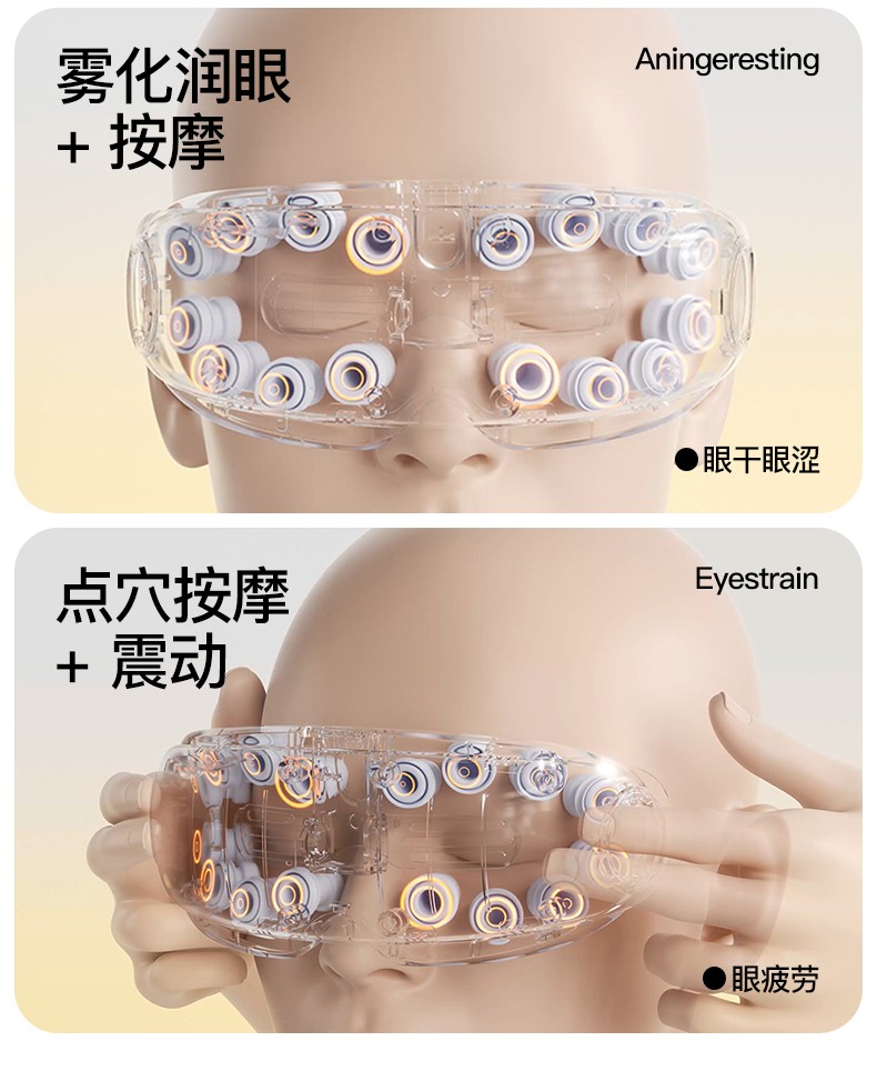 据了解,PGG 眼部按摩仪是一款集热敷、冷敷、按摩等多种功能于一体的眼部护理产品,能有效缓解眼疲劳,通过温热蒸汽与微米级雾化技术,为眼周肌肤提供深层滋润,帮助改善睑板腺功能,增加泪液分泌,从而有效地缓解干眼症的症状;同时仿生按摩技术,刺激眼部穴位,缓解眼部肌肉紧张,提升眼部舒适度,适用于长期用眼、佩戴隐形眼镜、加班学习、游戏爱好者、长途驾驶等广泛人群。