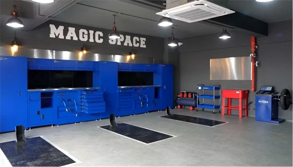 至于室内功能区,老实说,这里边的整体布局就挺……硬核的。首先这里有一个专门的“梦想改造空间”,里边有鑫源斥巨资采购的整套专业工具,可以自己动手对爱车进行深度改装。当然新手也不用担心,这里也有专业的改装导师带着你入门。