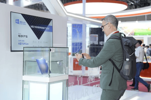 图2:正奇光能210R N型TOPCon电池吸引观展者