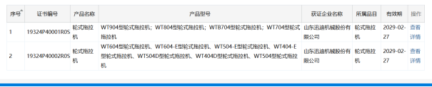 颁发100马力以下轮式拖拉机自愿性认证证书