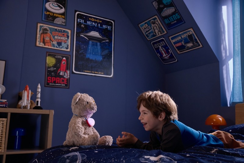 作为跃然创新旗下首款面向3-12岁孩子的智能儿童产品,BubblePal设计颇具想象力,据称其灵感来源于落在玩偶上的七彩泡泡。产品创新采用绑带式设计,可捆绑在几乎任意尺寸的毛绒玩具身上。依托先进的AI技术,它可以随时回应解答孩子们的奇思妙想,成为孩子的“超级百科”,充分激发孩子的探索欲、想象力。与此同时,借助大模型技术和情感识别算法,它还能够感知孩子的喜怒哀乐,无论是学习上的困惑,还是生活中的小情绪,它都能给予孩子们最贴心的陪伴和情感支持。