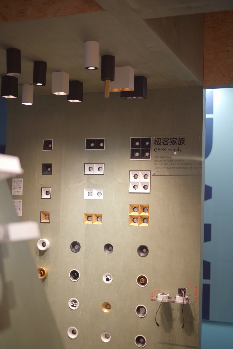 XRZLux的极客家族产品以其经典、完备、全面的产品体系,成为展会上的焦点。梯形展台的设计,矩阵式排列的射灯、吊灯、壁灯,展现了灯具的模块化互换设计的精髓。特别是首次亮相的极客双子,以其独特的设计和功能,为空间照明带来了全新的视角和体验。