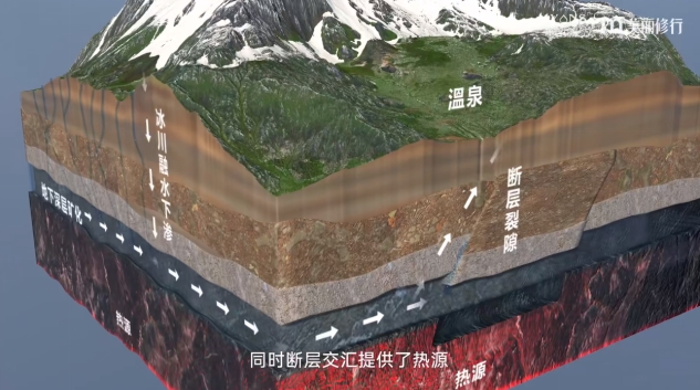 在地质专家王剑看来,这是自然界在特定环境下对氘元素产生过滤后形成的,一般多存在于高海拔的冰川地区。“天山温泉是经过断层裂隙上升形成的温泉。海水蒸发形成水蒸气,经过重重过滤重金属、杂质后,在天山遇冷形成降雪,经过地下深层矿化,同时断层交汇提供了热源和通道。”