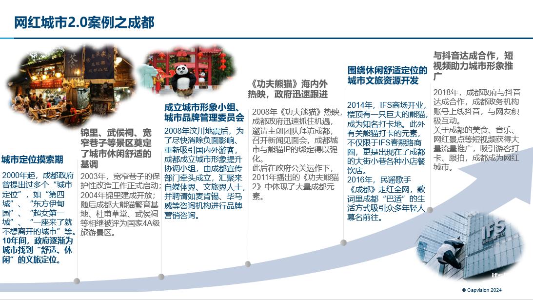 国内最早显现出系统性营销战略布局的城市是成都。从2000年起,政府对城市定位不断进行探索,经历漫长十余年的调整,逐步确立了“舒适、休闲”的城市文旅定位,以及大熊猫作为城市形象IP。