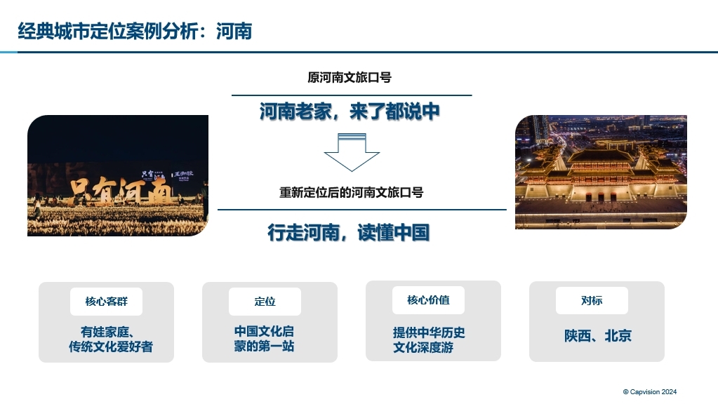 新的文旅定位相较之前的“来了都说中”更为清晰,这句口号背后能够看到河南试图定位为“中国文化的启蒙之地”,主要对标陕西、北京。从前消费者想要了解中国传统文化首选的旅行目的地可能是陕西或是北京,但这句口号则向那些有娃家庭或是传统文化爱好者发出号召:中国历史文化启蒙的第一站,是在河南。