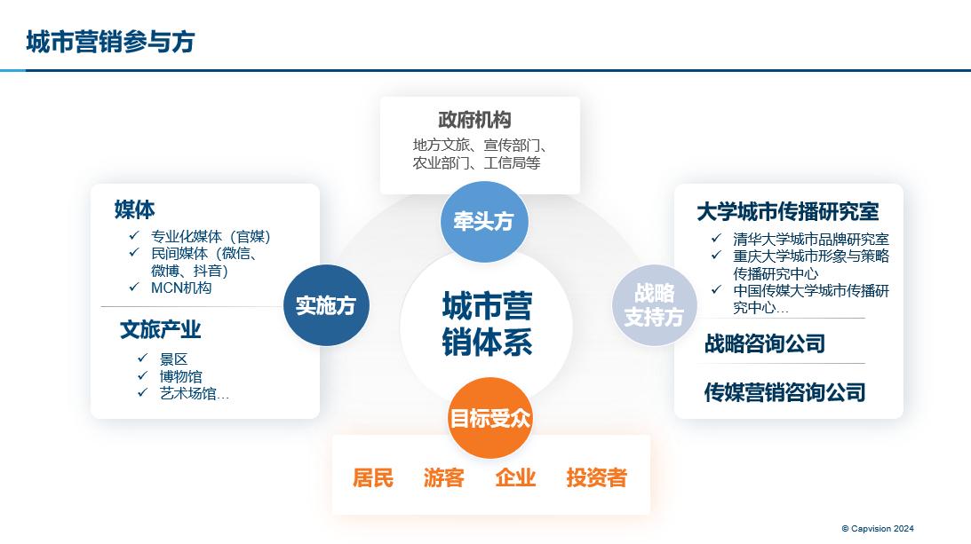 城市营销体系的参与方主要由牵头方、战略支持方、策略实施方以及目标受众组成。