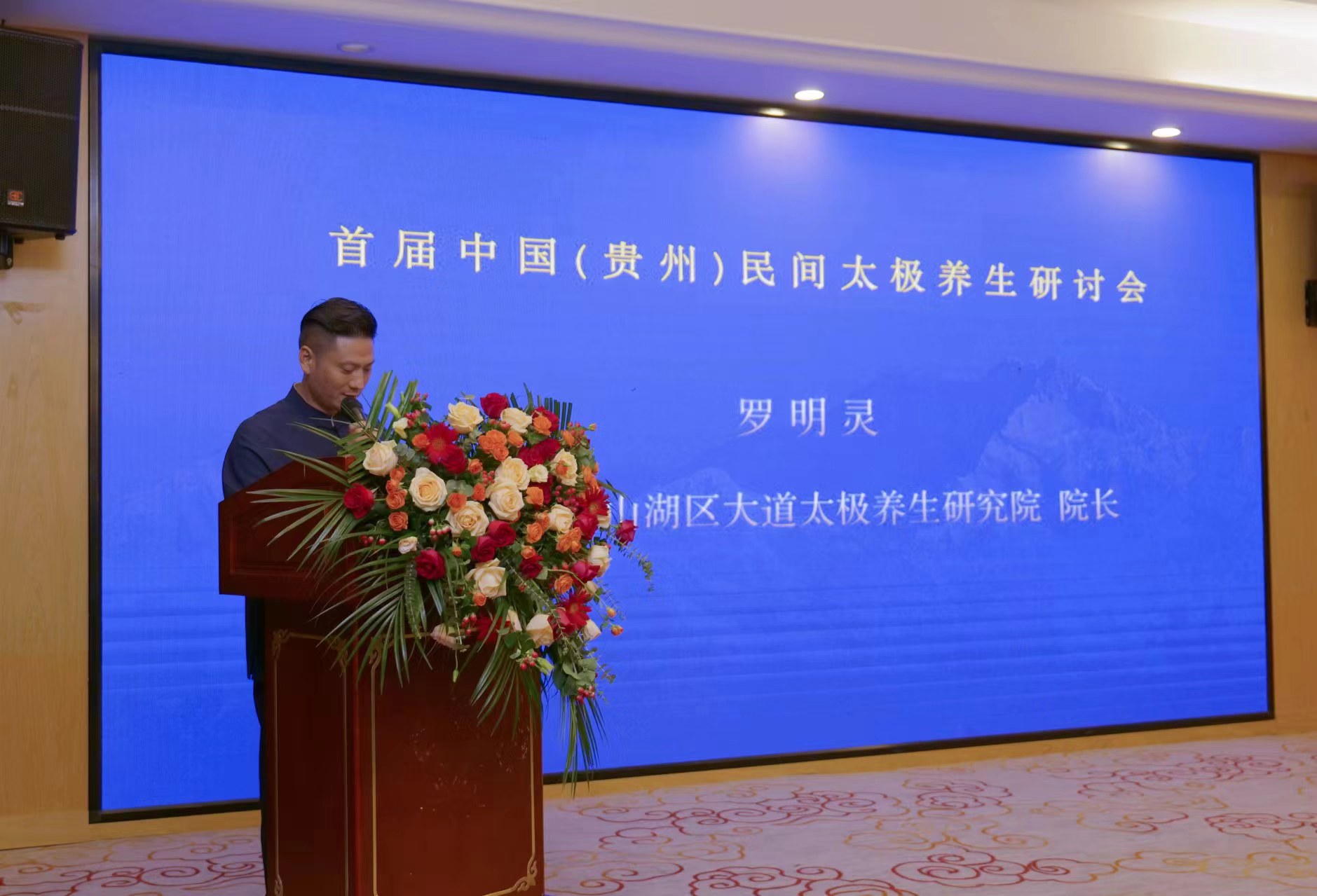 筹备主办本次研讨会近一个月的贵阳市观山湖区大道太极养生研究院罗明灵院长激动的说:“大道太极养生研究院成立三年来,一直致力于本地区全民太极养生发展和传播;弘扬中华优秀太极养生文化,积极组织研究、挖掘、整理太极养生技术和理论。今天见到出席研讨会有众多前辈、各地区武术、太极协会会长、秘书长及各行业专家、老师们感到非常高兴。组织本次公益性研讨会,是为了让更多从事太极养生事业的人士积极传播“太极养生+”多元化体系研讨成果,使习武人、养生者更好地了解其原理和方法,提升武技和文化素养,增强养生价值、重视健康和生活质量的认知;为更多太极养生爱好者带来健康快乐和幸福感。为宣传“康养到贵州”品牌推广和传播做出贡献,积极响应推进《健康中国2023规划纲要》提出的”共建共享、全民健康”建设健康中国战略主题。”