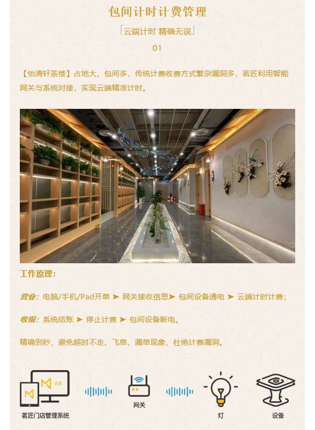 ¡¾âùÇåÐù²èÂ¥¡¿Õ¼µØ´ó£¬°ü¼ä¶à£¬´«Í³¼Æ·ÑÊÕ·Ñ·½Ê½·±ÔÓ©¶´¶à£¬Üø½³ÀûÓÃÖÇÄÜÍø¹ØÓëϵͳ¶Ô½Ó£¬ÊµÏÖÔÆ¶Ë¾«×¼¼ÆÊ±¡£ÔÚ´Ë»ù´¡ÉÏ£¬É̼ҿÉ×Ô¶¨Òå¶àÖּƷѹæÔò£¬Ð¡Ê±¡¢°ü¶Î¡¢°ü³¡¼Æ·Ñ£»Ö§³Ö³¬Ê±¼Æ·Ñ¡¢×îµÍÏû·Ñ¡¢Ò¹¼ä·þÎñ·Ñ¡¢¿çÌìת̨Ïû·ÑµÈ£¬Âú×㲻ͬ¹Ë¿ÍµÄÏû·ÑÐèÇó¡£