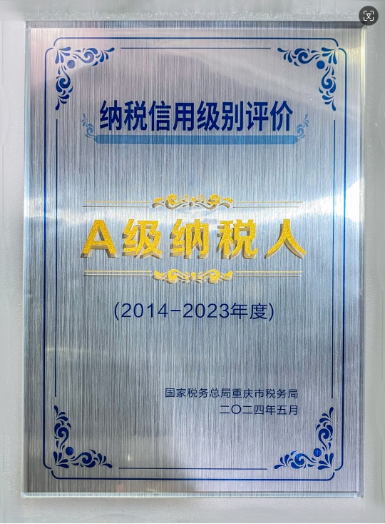近日,在2014—2023年度纳税信用级别评价中,渝丰科技荣获“十年A级纳税人”荣誉称号,该奖牌获得者,在重庆市范围内仅233户。