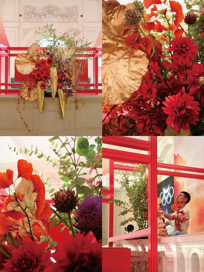 2024年7月24日,“中国之家”在巴黎正式开门。野兽派于“中国之家”创作了花艺作品。热烈的中国红,浪漫的法国紫,象征生命力的大丽花,代表团结和谐的绣球。在特别时刻,巴黎风格与中国文化元素交融碰撞,花朵绽放了特别意义。