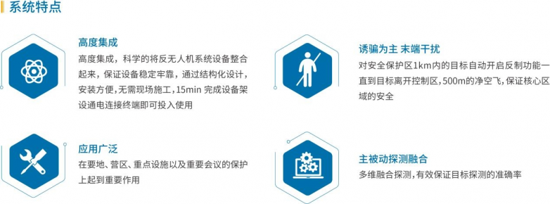 该系统研发目的是为了防御以无人机为载体,对重点区域投放危险物品、拍摄监管设施等行为。通过对防控区域内无人机进行侦测、反制和诱导,防止非法无人机进入核心保护区域。