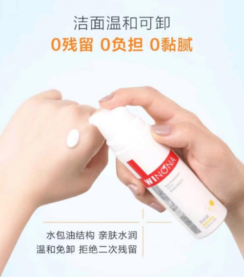 防晒成分多为物理和化学防晒,在经过日晒后容易分解变质,如果不及时卸妆就会渗入肌肤,为肌肤增加更多负担。薇诺娜清透防晒为敏肌专研,采用更加精简的配方,且防晒剂成分稳定,在光照后不会分解变质,不闷痘无刺激。针对防晒剂容易侵入肌肤的问题,清透防晒精选的复配防晒剂以大分子为主,不会进入肌肤。水包油结构也更加亲肤水润,日常使用洗面奶就能卸除,让肌肤能够轻“妆”上阵。