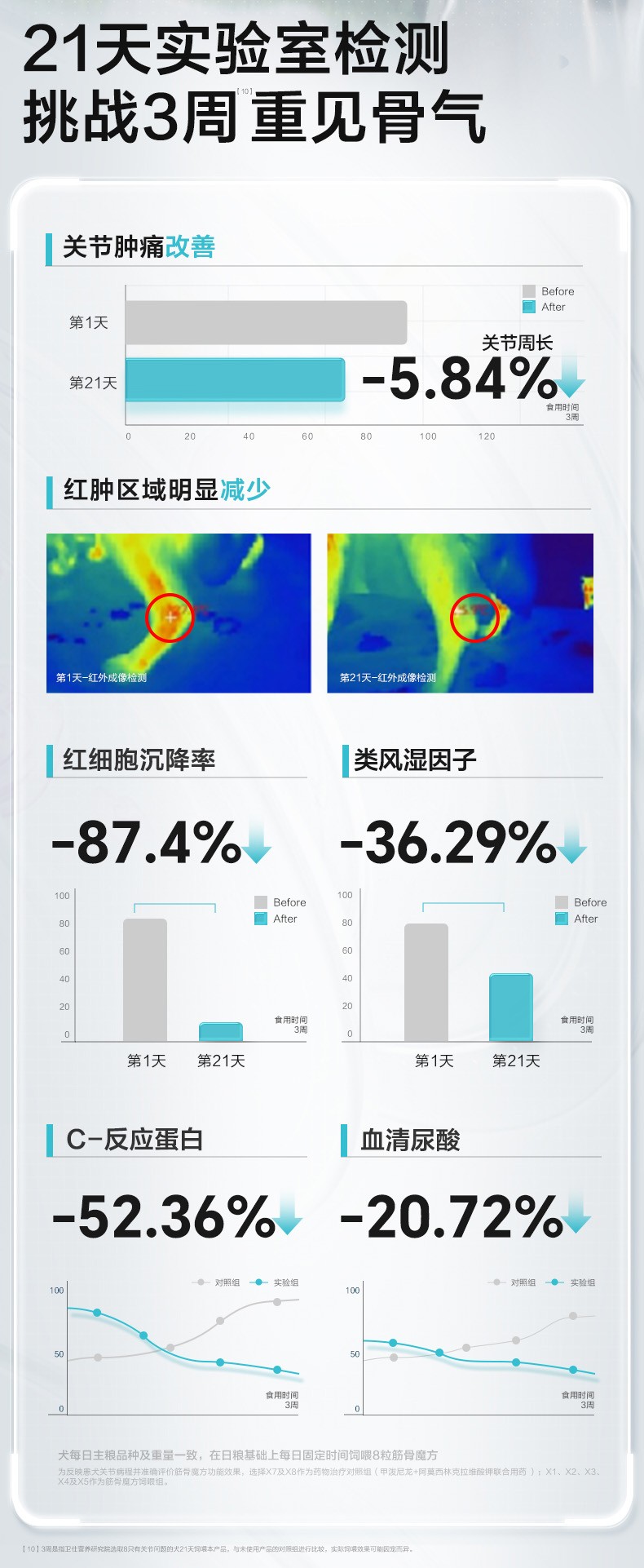 研发人员表示:狗狗对疼痛的耐受力比较强,当它们表现出行动障碍时,一般已经出现比较严重的炎症,更严重的甚至会危害其生命。毛孩子家长们发现问题要尽早就医诊断,同时,防患于未然,日常的养护也至关重要,这不仅是对它们关节的保护,更是对生命健康的负责。