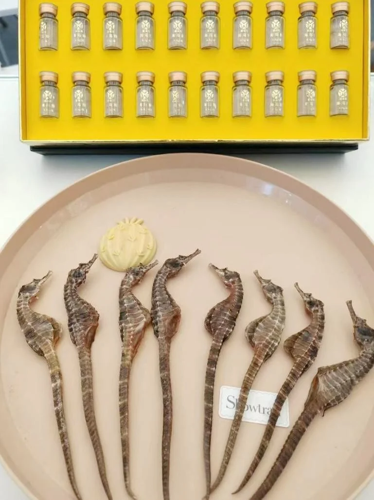 海马,别名水马、马头鱼、龙落子,属于海龙目海龙科的小型海洋鱼类。作为我国名贵海洋动物中药材,海马含有人体必需的8种氨基酸、胆固醇和胆甾-4-烯--酮、DHA/EPA以及诸如锌、铜、铁和锰等微量元素。