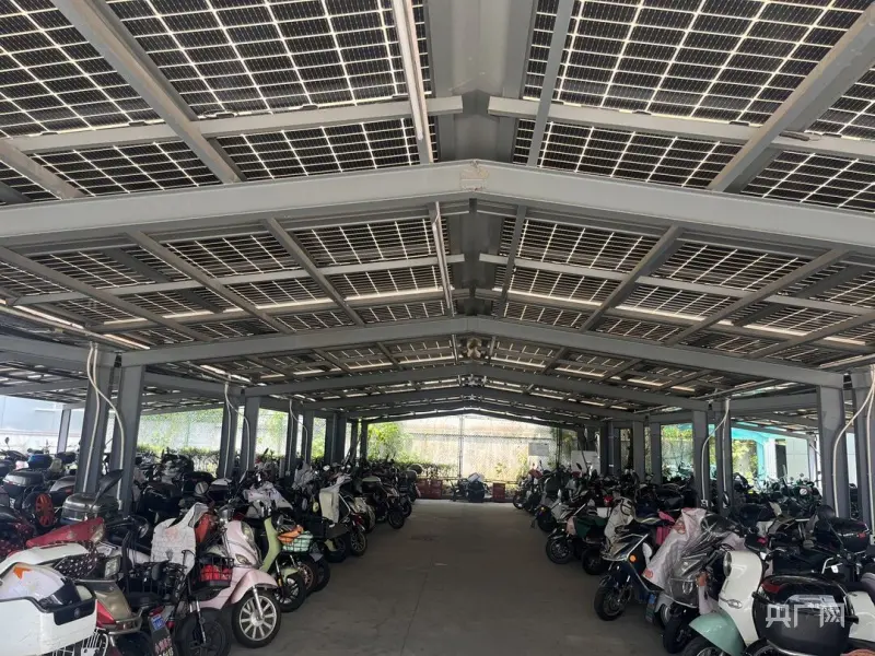 张江金科中心内,车棚屋顶由光伏及储能设备打造,车棚内电动车可直接用绿电(央广网记者 沈梅 摄)