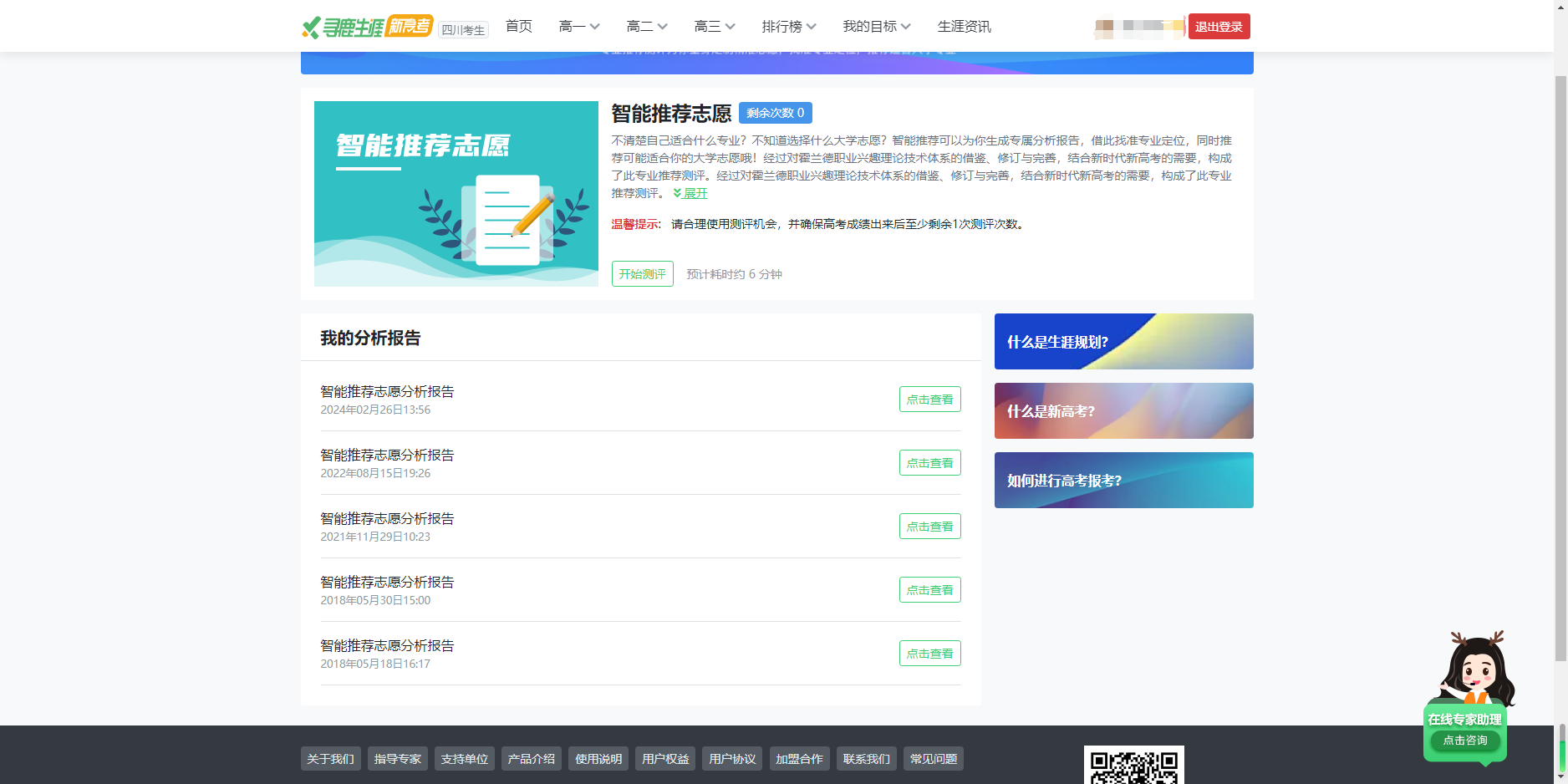 对于整个高中阶段,寻鹿新高考的生涯规划服务如明灯照亮前行之路,提供丰富多样的热门生涯规划相关测评。如 MBTI 职业性格测评、霍兰德职业倾向测评等数十种生涯规划相关测评,覆盖高一、高二、高三全年龄段,结合综合素质评价政策,帮助学生从多维度提高自我认知,明确未来发展方向。