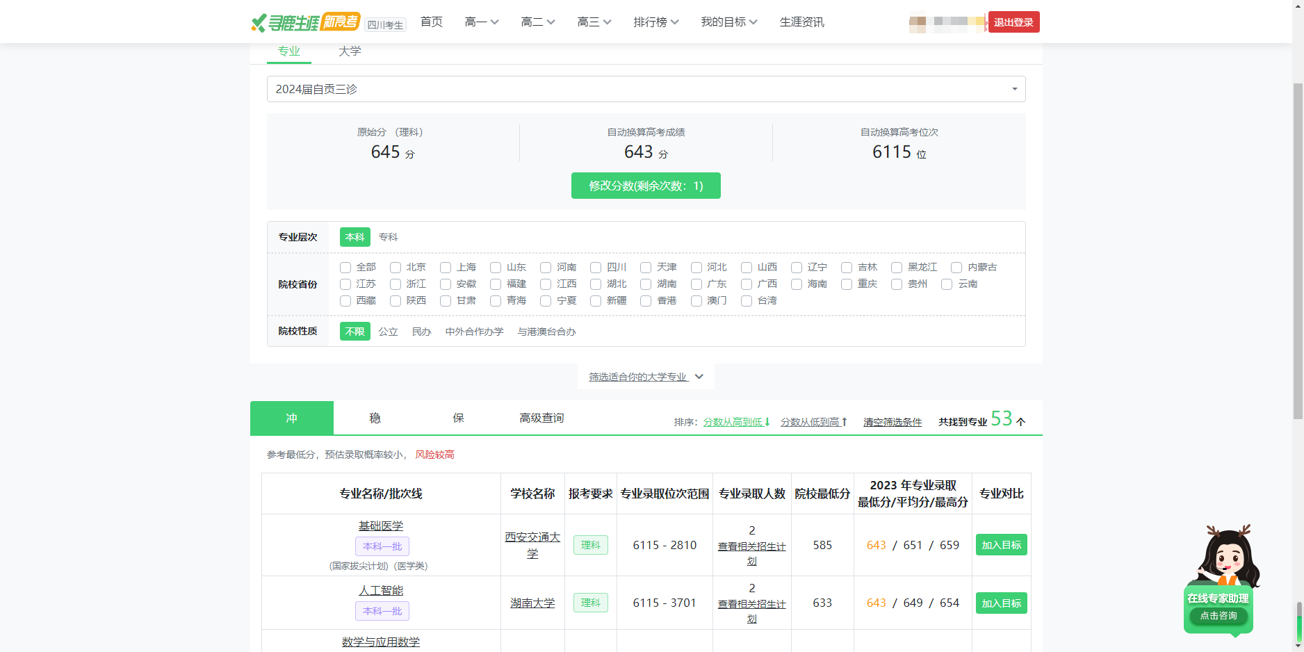 对于高二、高三的学生,智能推荐志愿和志愿填报功能更是如虎添翼。智能推荐志愿通过生成专属分析报告,找准专业定位;志愿填报功能则能依据考生的分数和目标专业,按照冲稳保原则,结合丰富的筛选条件,为考生提供精准的志愿信息,有效解决了志愿填报过程中的数据查询、方案制定和招生计划查询等难题。