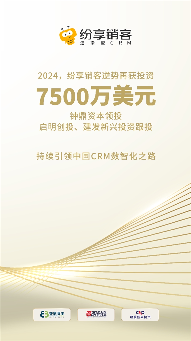 8月12日,纷享销客宣布完成新一轮7500万美元的战略投资,由钟鼎资本领投,启明创投与建发新兴投资跟投,这是继2023年7月在IPO资本协助下获贵阳创投3000万美元投资后,纷享销客在一年间再获投资,这也是其连续第四年获得新的投资。
