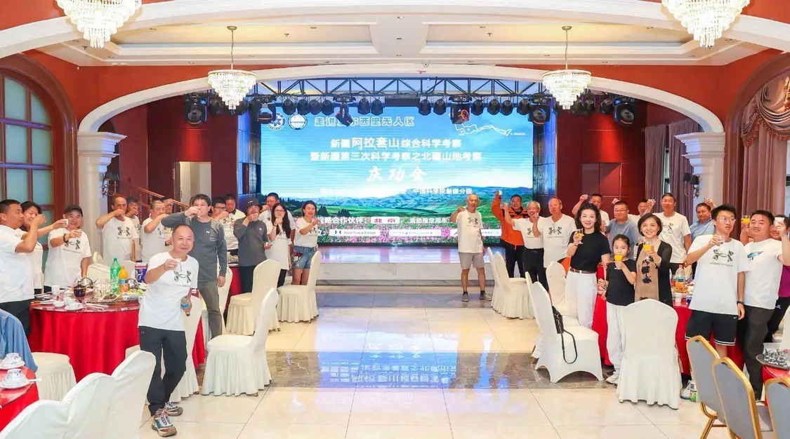 晚上,中国科学探险协会在维也纳酒店九九嘉宴会厅举行了隆重热烈的庆功会。科考队员们纷纷上台分享感受,并用歌声抒发情感。