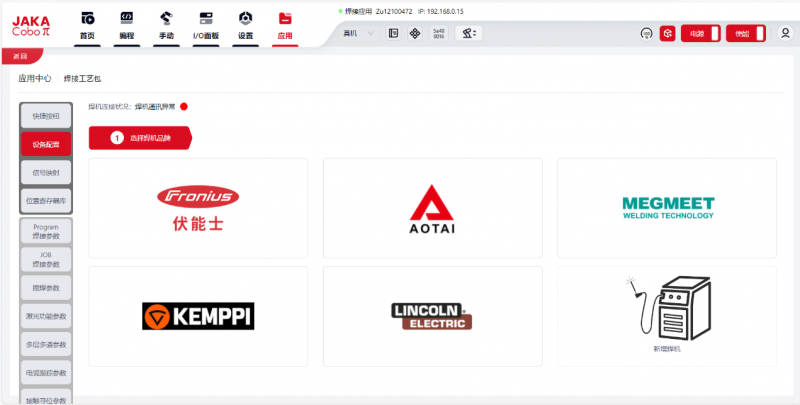 节卡机器人开发的JAKA 焊接工艺包和机器人控制软件深度融汇数字化和信息技术,不仅可满足用户对机器人设备操作的通用性和易用性需求,是普工也可使用的“0”门槛自动化工具,并且提供多场景下多种焊接功能参数化设置、参数库关联和数据保存,方便用户复用跟踪,以丰富的二次开发功能,与客户积极共创,不断内化高级焊工的技艺和实践经验、迭代优质作业现场的最佳参数配置,一举击破焊接领域焊接人才缺乏、焊接质量可控性弱等痛点,深度拓宽焊接自动化应用场景,重构焊接生产模式。