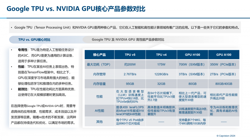 Apple每年9月的新品发布都是全科技界关注的焦点,2024年新款iPhone 16发售预告中,除了宣布引入了全新AI功能Apple Intelligence以外,同时也透露其训练的AFM模型采用了Google研发的第四代AI芯片TPUv4和更新一代的芯片TPUv5,而非NVIDIA GPU。这一选择是否会是新生态的风向标,对今后国内外市场会有怎样的影响?