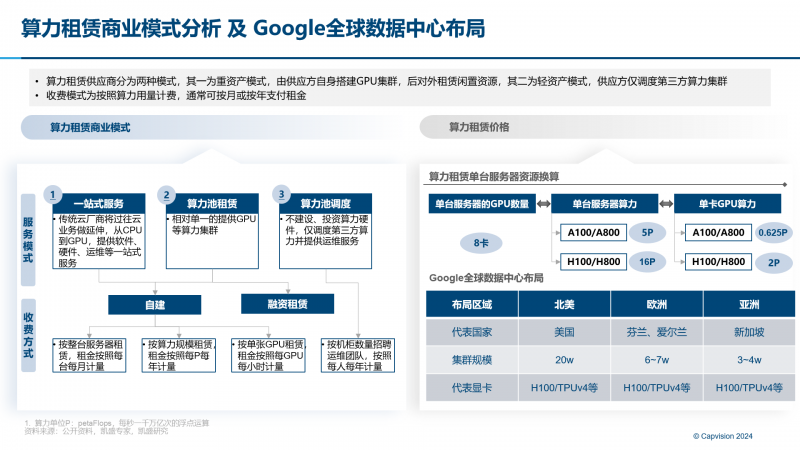 主要原因为:Google对于其TPU+GPU算力集群的方案保密性及知识产权重视度高,不会轻易向第三方售卖;另外TPU+GPU集群模式的供电及液冷要求也更高,选址也是较难解决问题;后端运维暂时也无法投入过大精力进行。