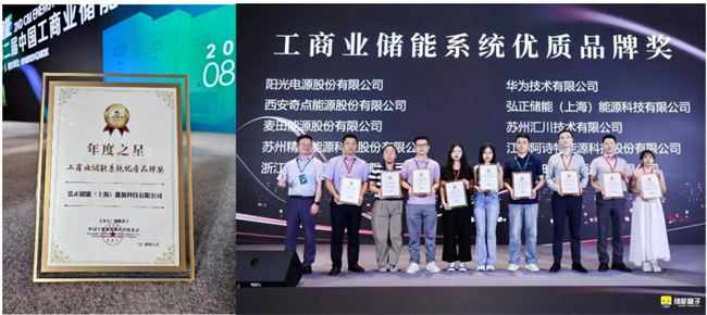 大会期间举行了2024中国工商业储能年度之星颁奖典礼,弘正储能凭借在工商业储能领域出色的产品力和创新力荣获“工商业储能系统优质品牌奖”,再次见证行业对弘正储能品牌影响力和技术实力的认可。