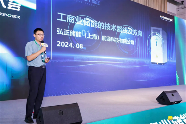 会上,弘正储能副总经理杨晓光应邀发表《工商业储能技术路线及方向》的主题演讲。他表示,目前工商业储能正处于快速发展和多变期,用户认知也在加速更新,且周期逐步缩短,所以产品也应做到持续迭代,以满足客户对于更加安全、可靠、经济的储能系统的迫切需求,推动储能技术持续向数字化、智能化的方向演进升级。
