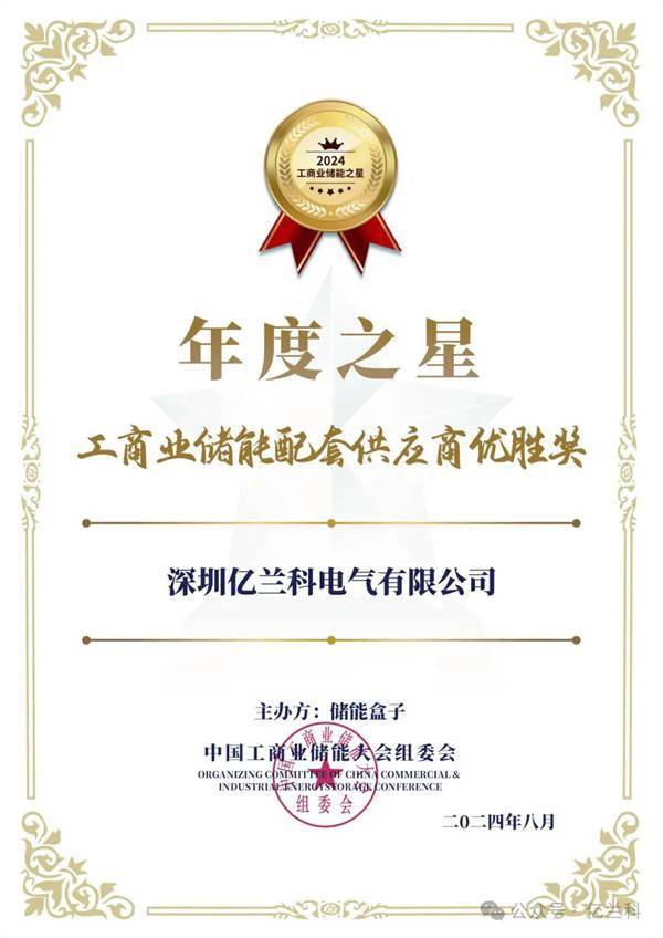 会议期间2024中国工商业储能年度之星颁奖典礼同步进行,亿兰科产品方案受到行业的认可,被授予“工商业储能配套供应商优胜奖”
