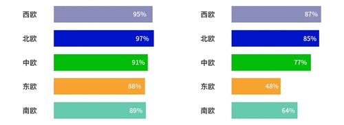 欧洲各地区互联网和电商用户占比