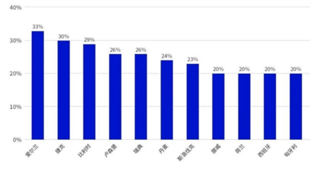 欧洲各国电商占商业总收入的百分比