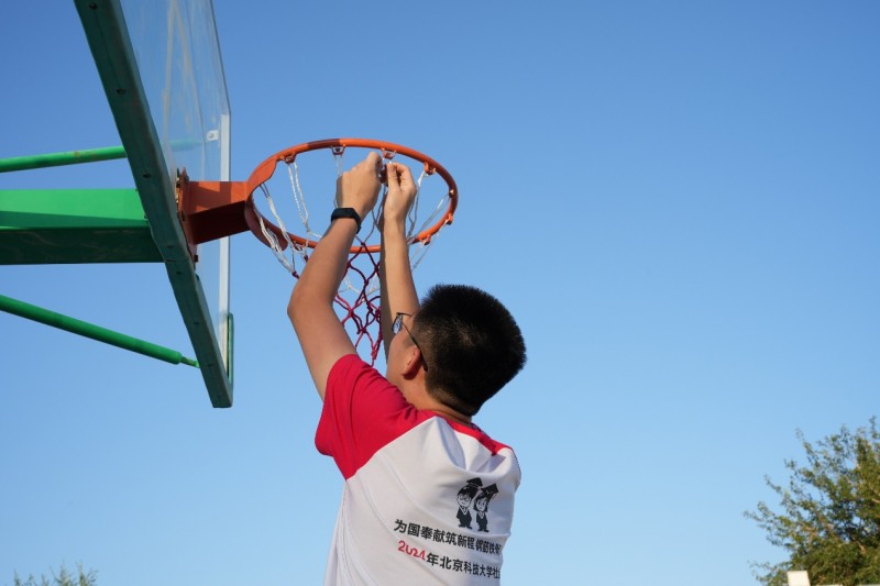 图为支教队员为孩子们更换篮网 通讯员 南京生 摄