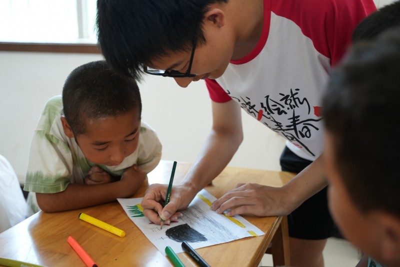 图为支教队员讲授绘画课程。通讯员 南京生 摄
