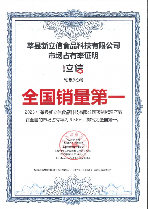 在这样一个内卷严重的赛道,一家起步于山东莘县的公司,脱颖而出。据国内权威调研机构尚普咨询最新披露,莘县新立信食品科技有限公司(以下简称“立信食品”)出品的烤鸡,全国销量第一。