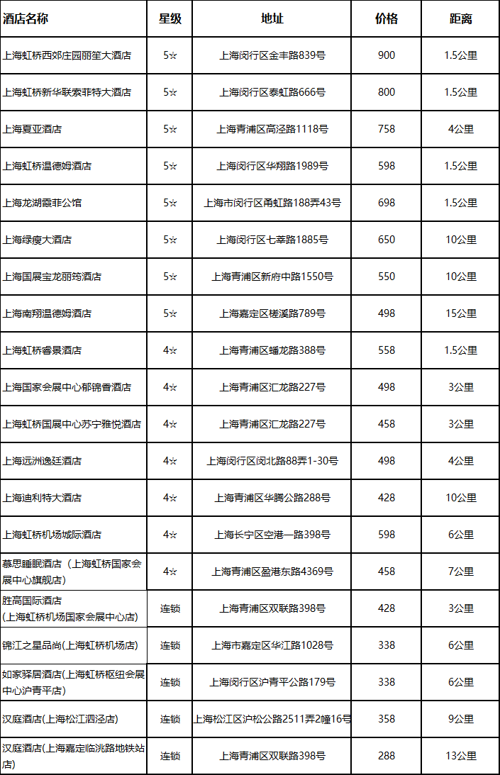 以下酒店包含服务:双早+班车接送到展馆+现场专人接待和税费服务费。