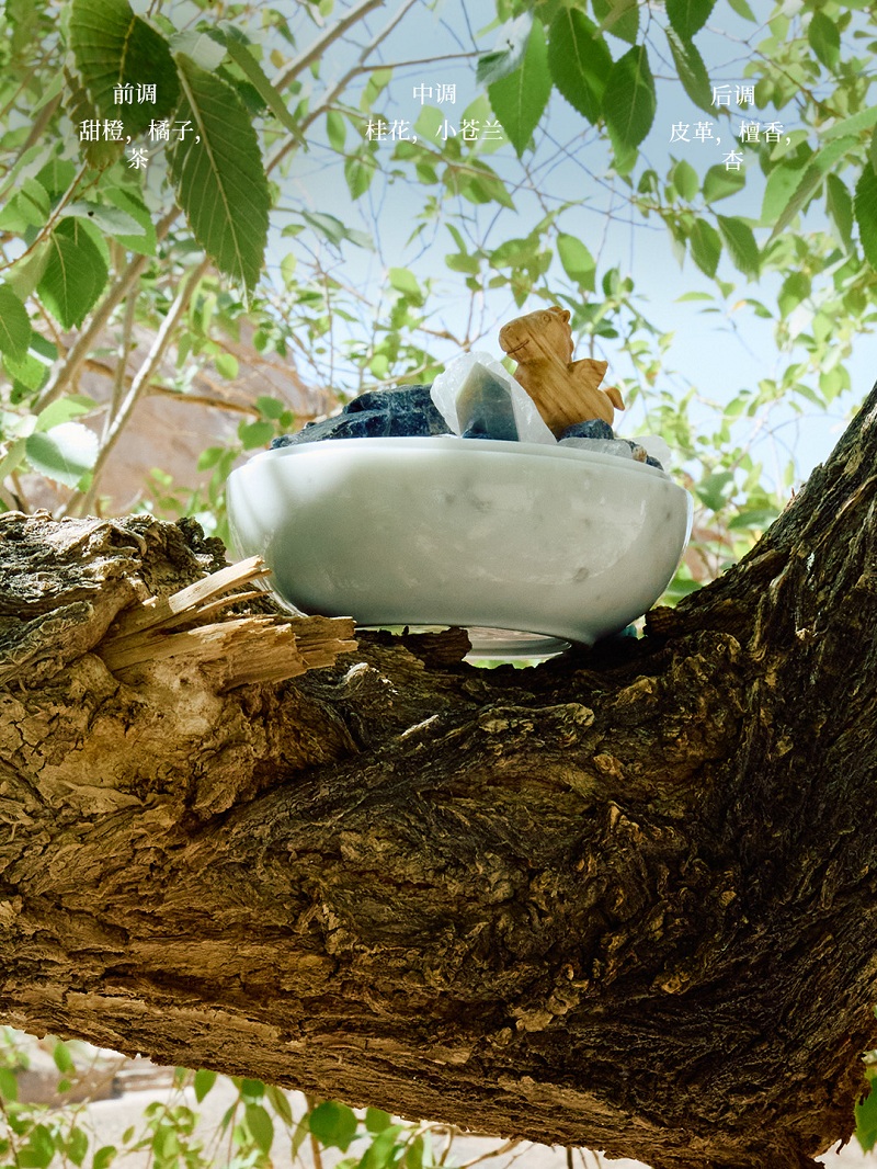 相逢终有期,离散终有时。“当时明月”如一缕柏枝清香,借香气,寄托思乡之绪。前调香柠檬和豆蔻,与一定比例的辛香料是点睛之笔,仿佛闻到故乡泥土的芬芳,与柑橘和花果香交相辉映,香气的温柔之中带着力量。木质尾调如同一轮明月缓缓升起,明亮永恒,是回归故乡的游子,是离散时无法诉说的心绪。