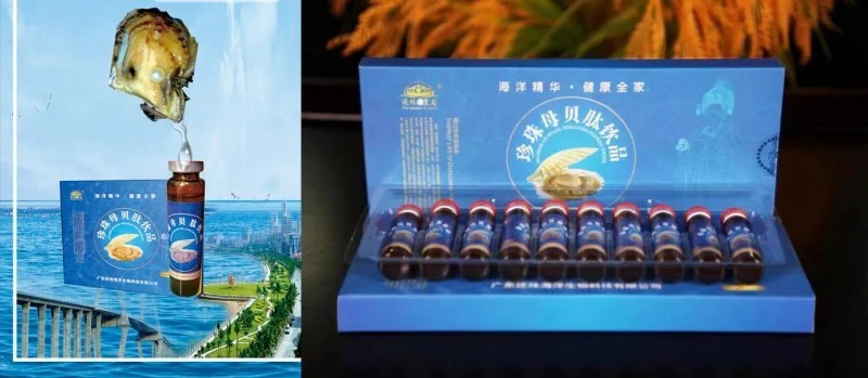 珍珠母贝经3-4年海中吊养,历尽千辛万苦把珍珠育成后,余下的是珍珠胎囊。还珠海洋以流沙珍珠母贝(珍珠胎囊)为原材料,利用高科技专利技术萃取其精华部分,并加工成大健康产品——珍珠母贝肽饮品。经天津国际生物医药联合研究院分析测试中心检测,该产品: