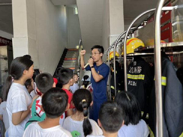 本次研学活动精心筹备了三大参观项目,广泛涵盖文化、体育、健康、科技及安全教育等诸多领域。孩子们首先走进了社区的室内读书室,在这里,社区工作人员热情地为孩子们介绍了丰富多样的书目,生动地讲述了阅读的种种益处,成功激发了孩子们对读书的浓厚兴趣,他们一致表示,如若得空便会前往儿童读书室,尽情沉浸在书籍的海洋中。接着,孩子们来到了室内乒乓球室,社区工作人员向他们介绍道,这里是社区开展乒乓球、广场舞等一系列室内体育活动的重要场馆。随后,孩子们踏入了温州城市大脑运营指挥中心,仿佛打开了一扇通向未来的神奇大门。在这里,他们看到了智能化的城市生活场景,城市交通的有序调度、公共设施的高效管理以及便捷的民生服务,无不让孩子们对未来城市的发展充满了期待。孩子们认真聆听着讲解,眼中满是好奇与惊叹,智能化的城市管理模式在他们心中种下了科技改变生活的种子。最后,研学之旅在温州消防救援支队特勤大队二站画上了圆满的句号。消防队的哥哥们详细介绍了各种消防器材的用途和使用方法,还展示了功能强大的消防救援车。孩子们聚精会神地学习,不仅掌握了新的知识,还增强了安全意识和自我保护能力。