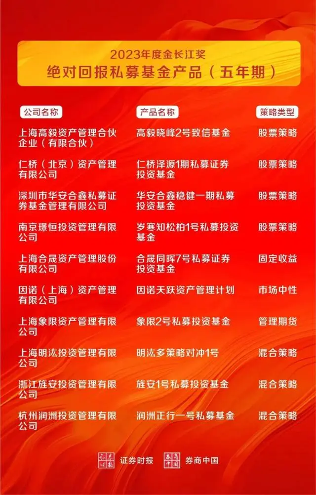 据了解,2024中国金长江私募基金发展高峰论坛由证券时报社主办、长江证券协办,以“向‘新’出发,聚势同行”为主题,共有来自全国各地的私募从业者超500人参会。第九届中国私募基金金长江奖也在此次论坛中同步揭晓,明汯投资旗下“明汯多策略投资1号”产品凭借良好的持有体验,荣获“2023年度金长江奖 · 绝对回报私募基金产品(五年期)”奖项。
