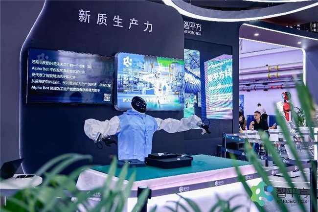本次大会上,智平方设立了“新质生产力”和“智能新生活”两个真实场景展示区域,并进行了新产品Alpha Bot 1S的首发。