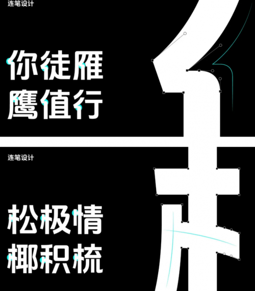 抖音美好体同样借鉴书法中笔锋的概念,将发笔时顺势落笔、笔锋显露在外的“露锋”笔法,转换为横笔斜切的设计手法,在保留书写感的同时,增加字体的视觉变化节奏。
